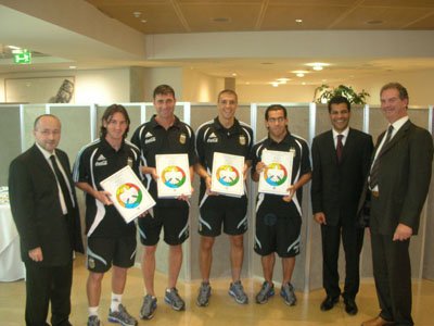 The Argentine young football star Lionel Messi whom is a playing for the Spanish team Barça and now named Honorary Ambassador of Goodwill for Peace; proudly shows the book “Football and Peace for the World”. He is willing to contribute as a well known sportsman in the program of Universities for Peace which is carried out by this Organization.